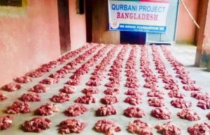আর-রাহীম ফাউন্ডেশনের কুরবানী প্রজেক্ট এর বন্ঠনকৃত গোশতের দৃশ্য।